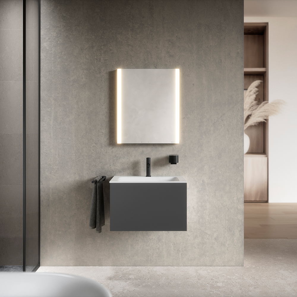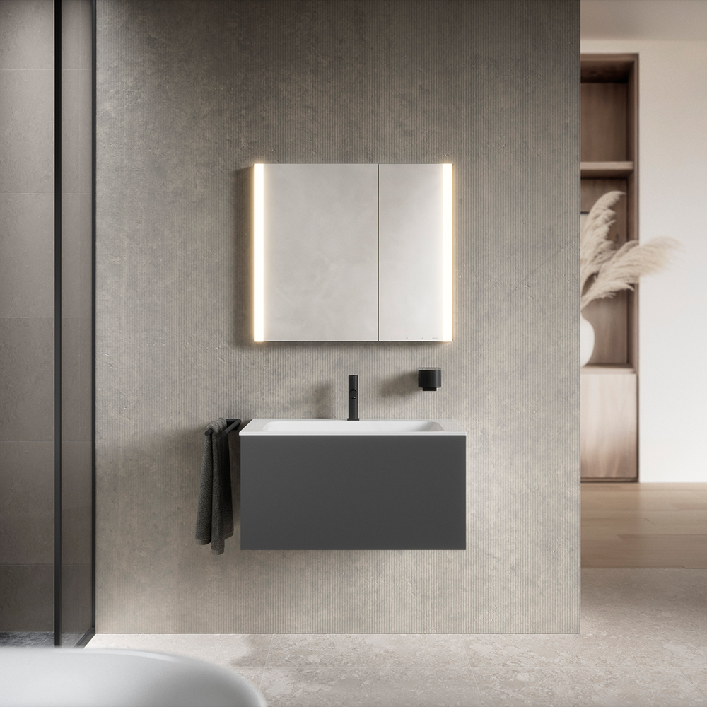 KEUCO SOMARIS ist sehr clean im Look, nicht zuletzt wegen des grifflosen Designs. Klare Linien fügen sich in der geradlinigen Badarchitektur ein. Exakte Kanten heben das moderne Äußere des Spiegelschranks hervor. Für ein absolut reduziertes Bild am Waschtisch lässt sich neben der Wandvorbauvariante ein Einbaumodell wählen.